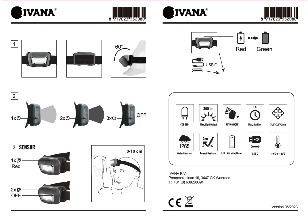 De lamp kan aan- en uitgezet worden met behulp van een hand swipe beweging voor de lamp. Oplaadbaar via USB. Voorzien van 2 standen, max. 300 Lumen. Geleverd inclusief USB kabel.